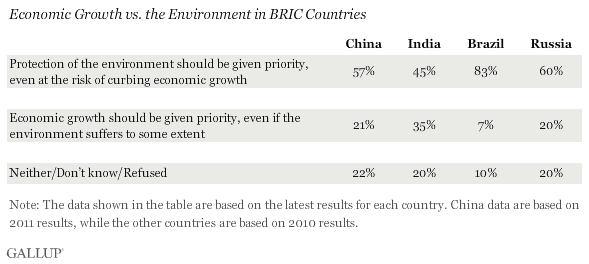 Meanwhile, a recent Gallop poll found that 57% of Chinese adults surveyed in 2011 wanted more government action to protect the environment, even at the risk of slowing economic growth. The World Health Organization (WHO) declared air quality in Beijing and Shanghai to be 2-3 times worse than in London or Los Angeles. While air pollution remains severe in the largest cities, Gallop cites regional cities like Qingdao, Tianjin, and Shenyang as emerging role models for urban environmental and economic development.