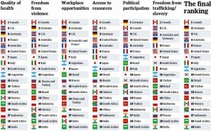 The Globe and Mail featured a chart on women’s status and rights in G20 countries based on a worldwide poll of gender experts for the 3rd Canadian-inspired G(irls)20 shadow summit leading up to next week’s formal G20 summit in Mexico. Canada comes out on top for all but one category and that was only bested by Germany. China’s rankings are far lower coming in 14th overall but befitting of its developing country status. India’s was worst or second/third worst in all categories.